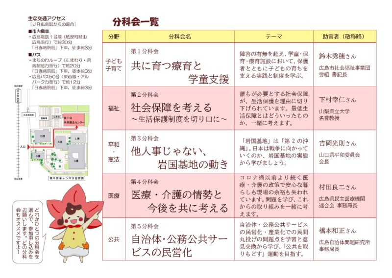 5つの分科会(ちらし裏面参照)から、おひとつ選んでご参加ください。